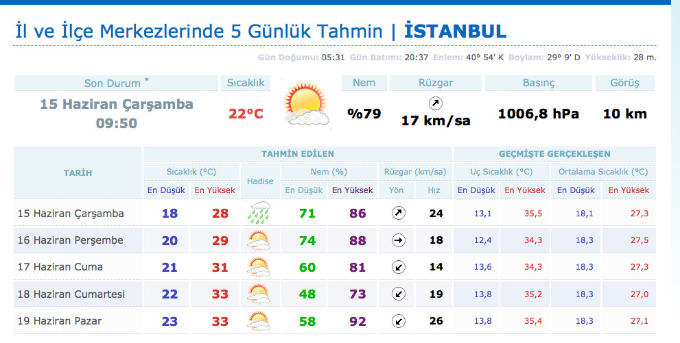 | 06 Nisan Pazartesi | Güneşli | %71 | 4.69 |